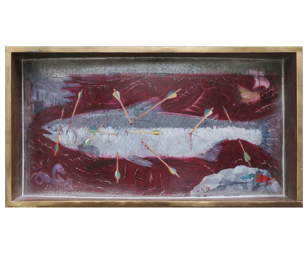 “Redside” 38 w x 30 h” framed oil on canvas – $1800