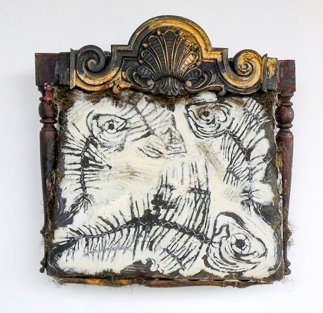 “Day of the Dead” 19 w x 24 h” painted reordered chair parts – $850