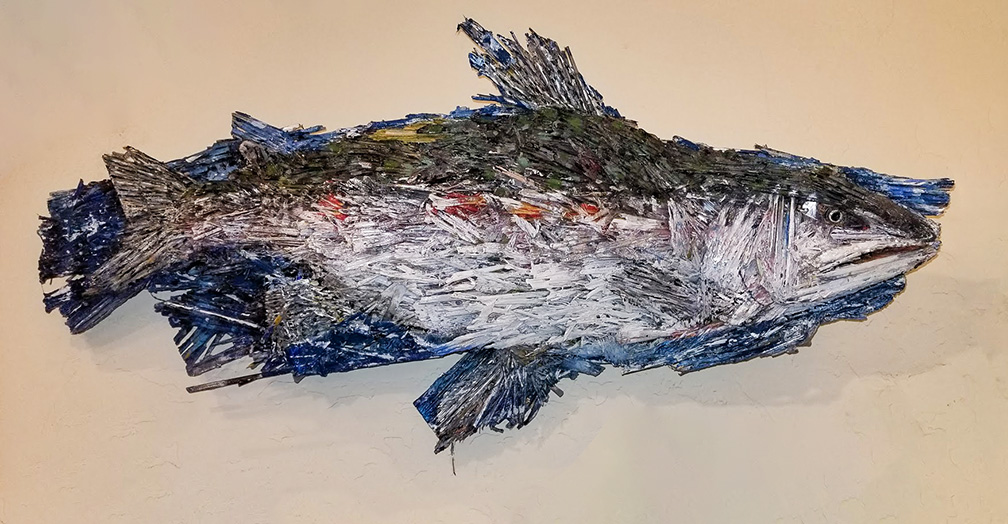 “Straw Steelhead” 36 w x 12 h x 6 d” formed and painted straw – $3000