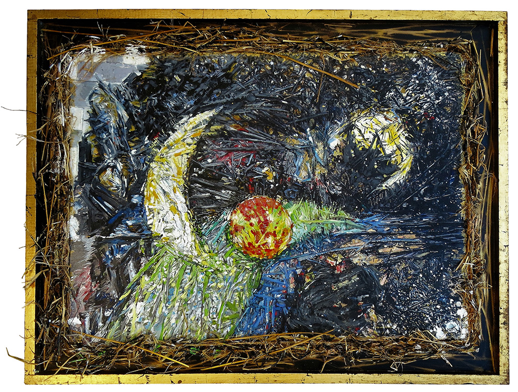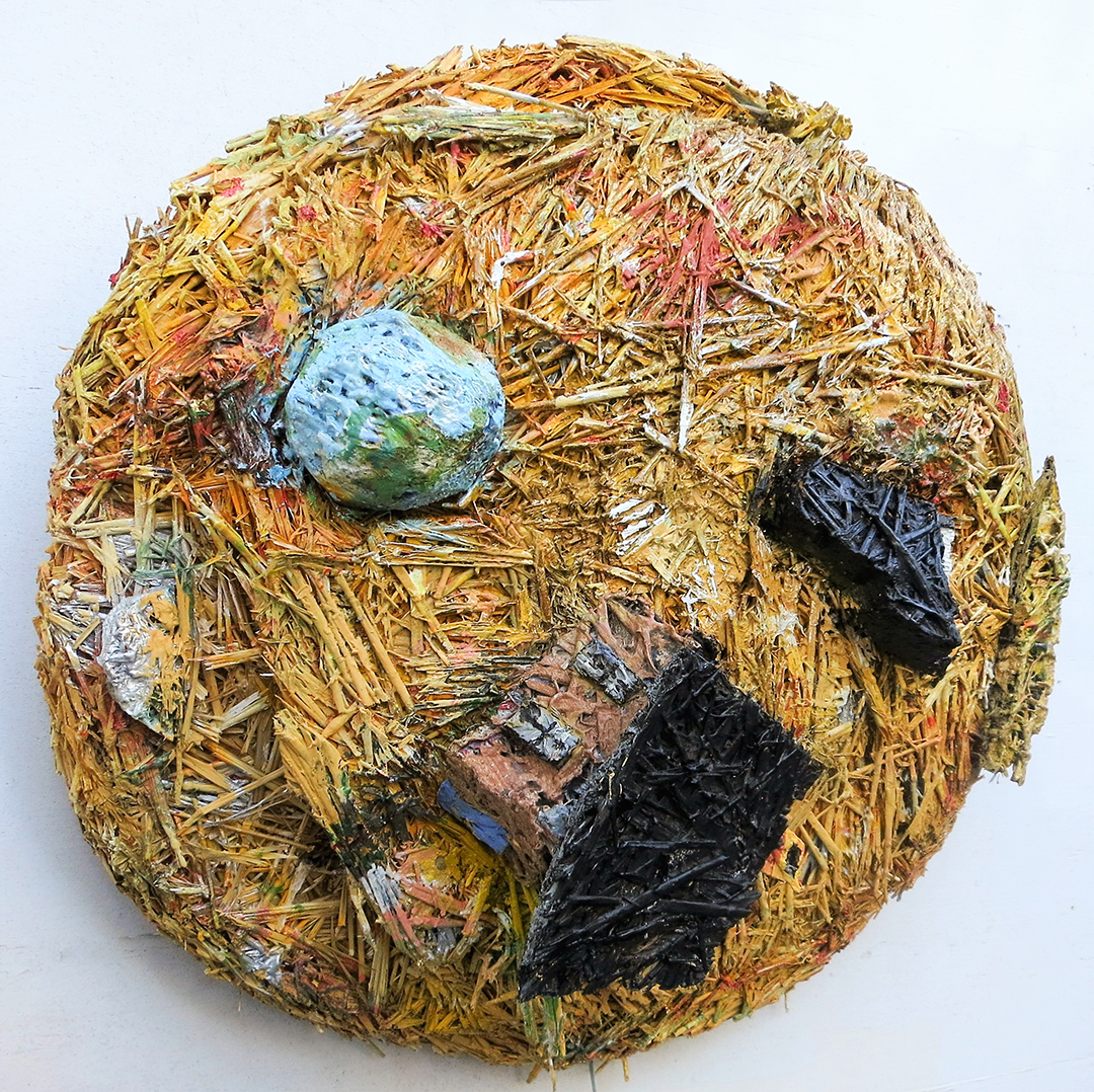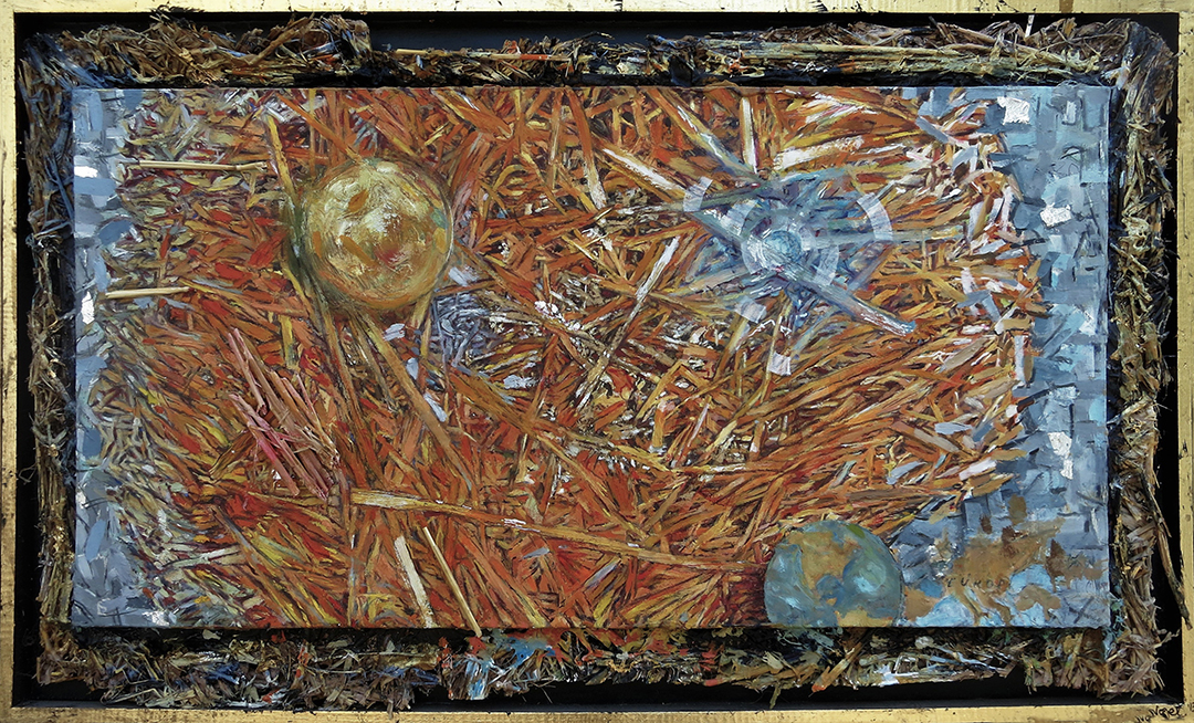 “Cosmic Straw” 34 h x 44 w oil on canvas and straw