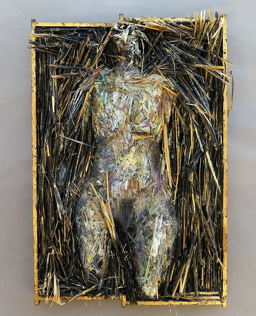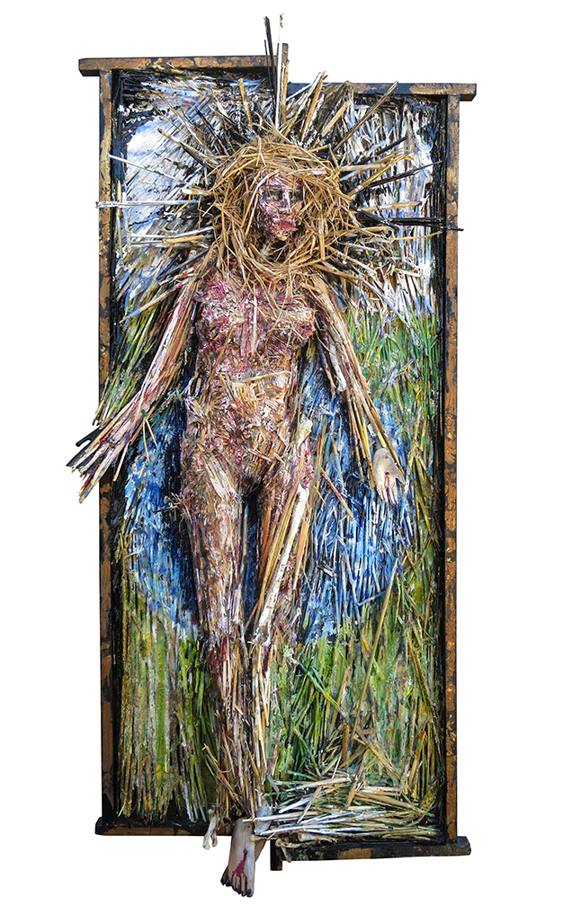 “Annunciation X” 43 h x 23 w x 3 d” formed painted straw