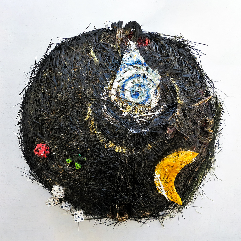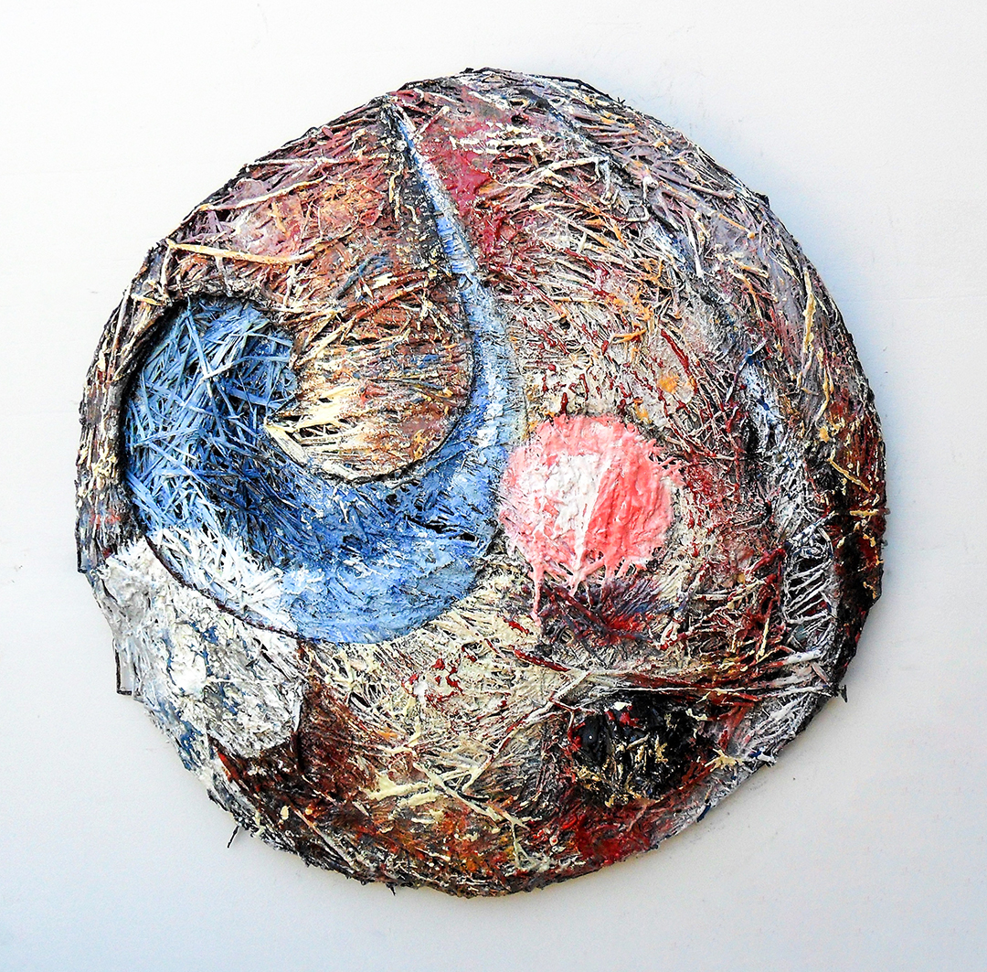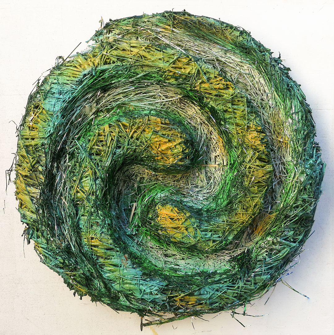 “Origin Story” 32 w x 32 h x 8 d" painted formed straw – in collection