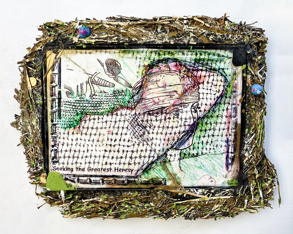 "Alpha and Omega" 22 h x 34 w" oil on canvas and straw – $1000